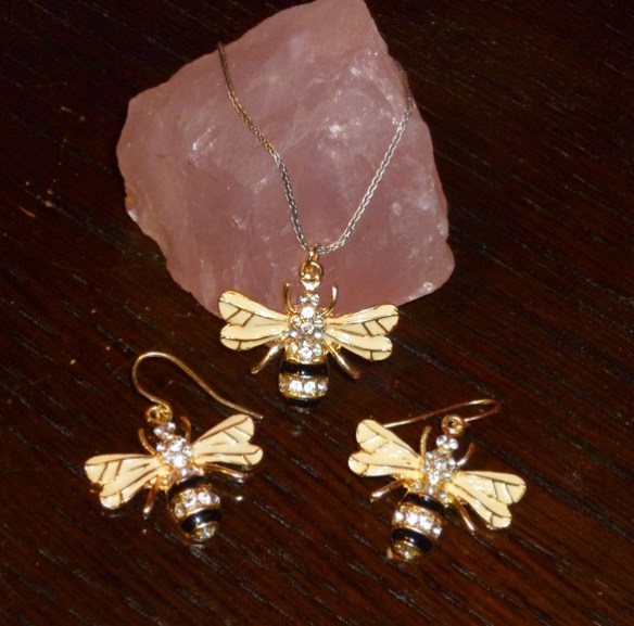 Meantime, I have been busy with a new venture – jewellery-making. First earring and necklace set – christened ‘Bee-dazzled’!