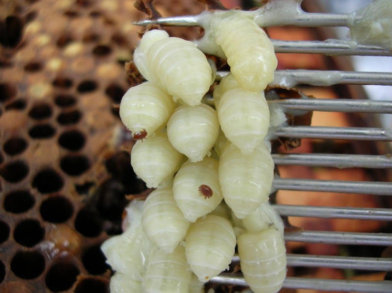 drone capping Published May 24, 2012 at 800 × 598 in Bee Health Day at the London Beekeepers Association A capping fork is used to un-cap drone brood on a test frame and to count the number of larvae that have varroa – like the one here with a big red mite. © Crown copyright 2012