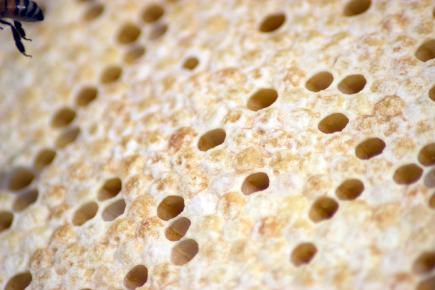 LBKA3 Published May 24, 2012 at 3685 × 2457 in Bee Health Day at the London Beekeepers Association While you can treat the brood nest for varroa, treatments shouldn’t be used while supers are on the hive and being filled with honey. Here I caught a little bee flying off from the comb!