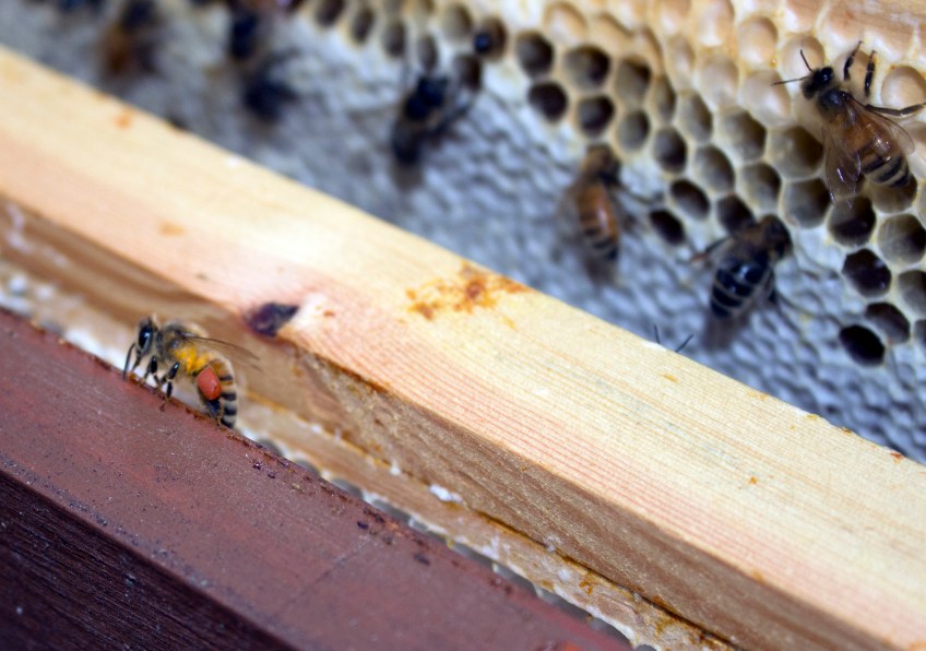 Dahlia pollen bee Published July 28, 2012 at 2689 × 1890 in Olympic Queens! This little bee has flown home with beautiful terracotta-coloured pollen in her baskets. Our pollen chart suggests it may be from dahlias.