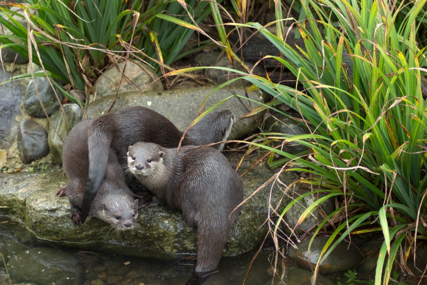 Rain or shine, the otters like it fine