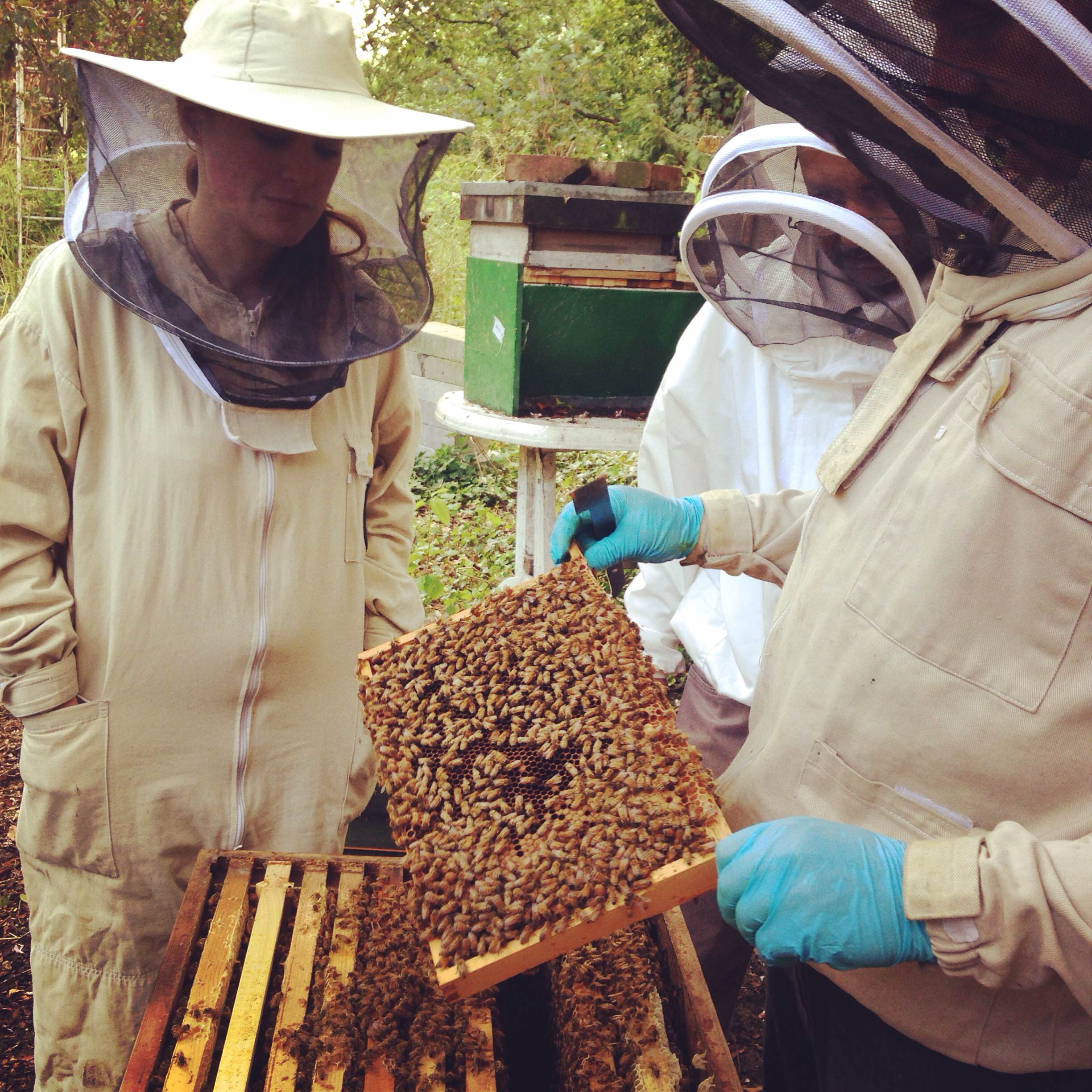 Three hives down, we had a tea break and enjoyed a slice of marmalade cake made by Emily. Then it was back to work. I oversaw as Freddy inspected Chamomile’s hives and Emily helped Jonesy with his hive.