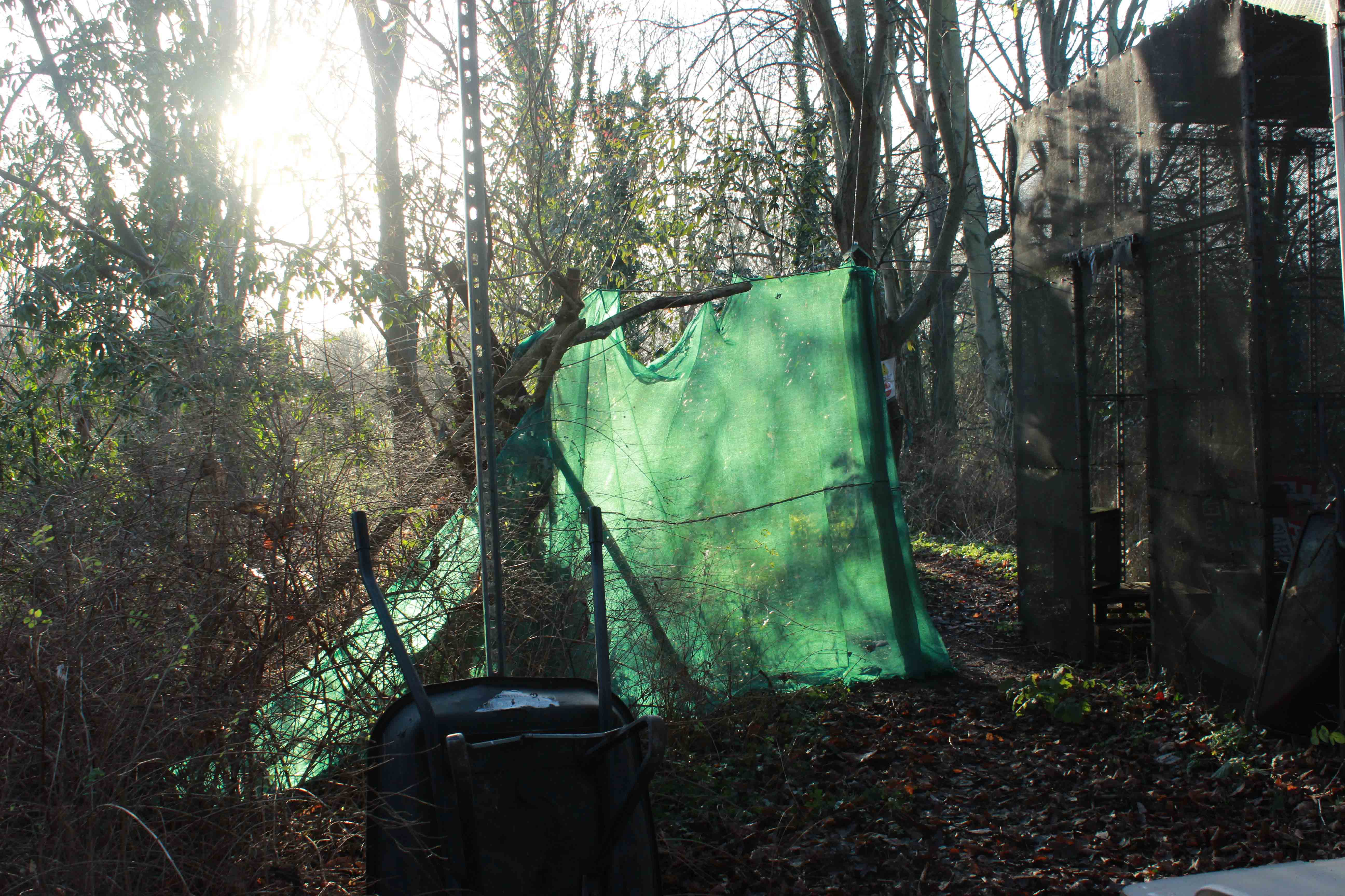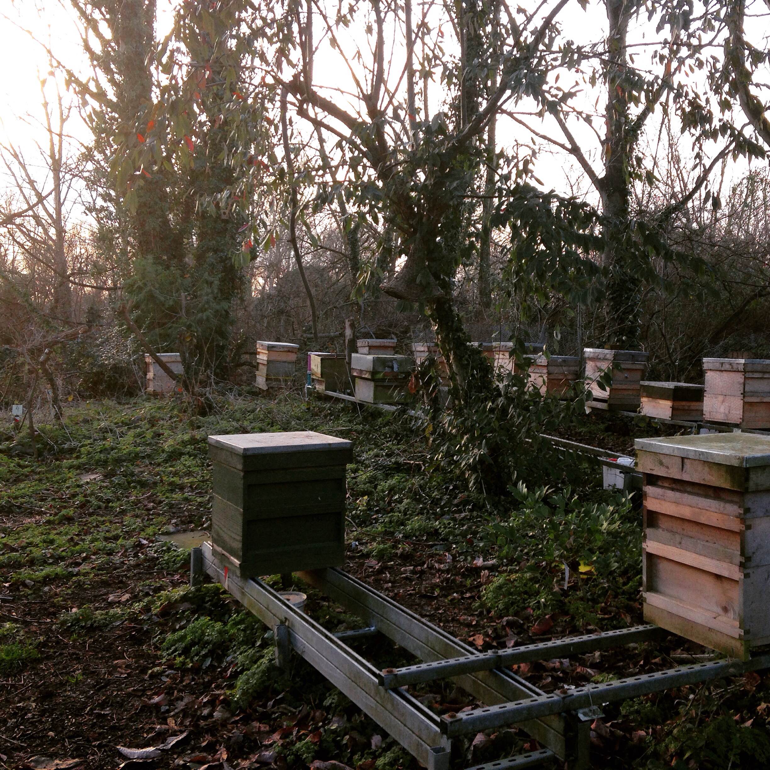 But the shorter daylight hours in January means beekeepers have less time to stand around and chat, and those beguiling bees were waiting for us, behind the curtain in the fading sun.