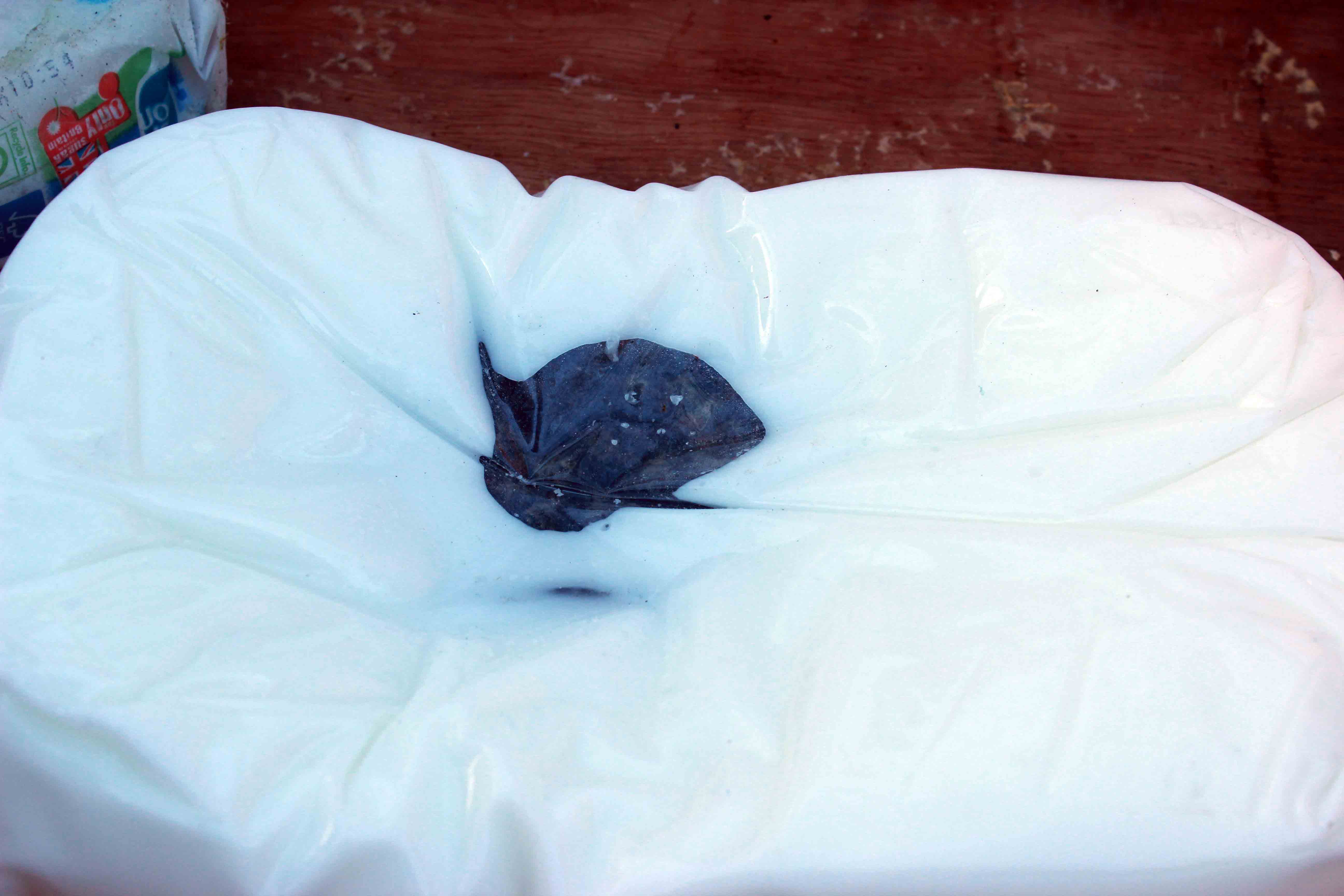 Melissa’s bees have eaten their way through to the second block of fondant, although the hive is still heavy with honey stores. I suspect that they just like nibbling icing sugar!