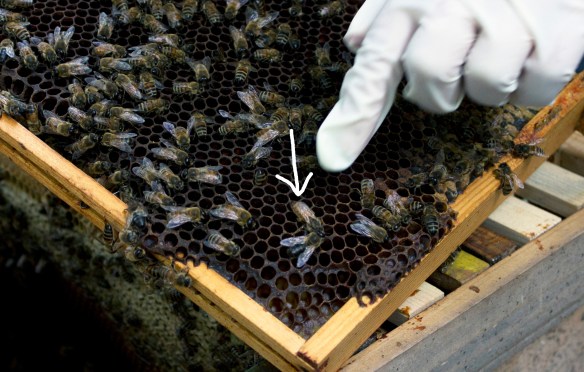 She’ll spend her early days eating lots of pollen, cleaning cells, and sitting on brood to keep it warm.