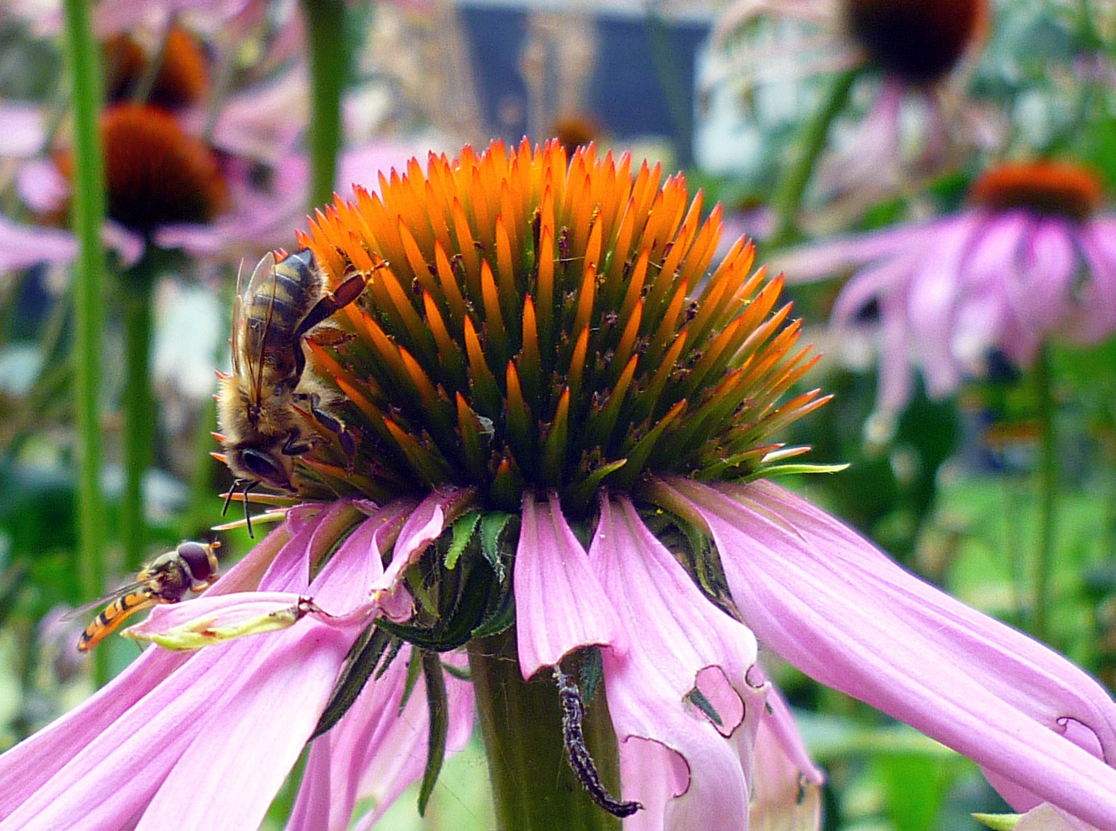 The worker bee will grow weary on her last foraging flight. Her tired wings will fail her and she will rest and become cold. One evening I saw this bee stumbling on the echinacea in the Medicinal Garden of the Royal College of Physicians, and by morning she was frozen on the ground.